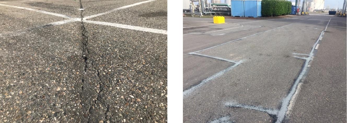 Komen deze beelden u bekend voor op uw bedrijfsterrein? Wat voor de winter nog kleine scheurtjes leken zijn nu open naden geworden. Vuil, regenwater en sneeuw is in de asfalt scheuren bevroren waardoor de schade groter is geworden. Steentjes uit het asfalt zijn los gegaan waardoor de scheur groter is geworden. Zorg ervoor dat je dit probleem verhelpt voordat de scheur een gat wordt!